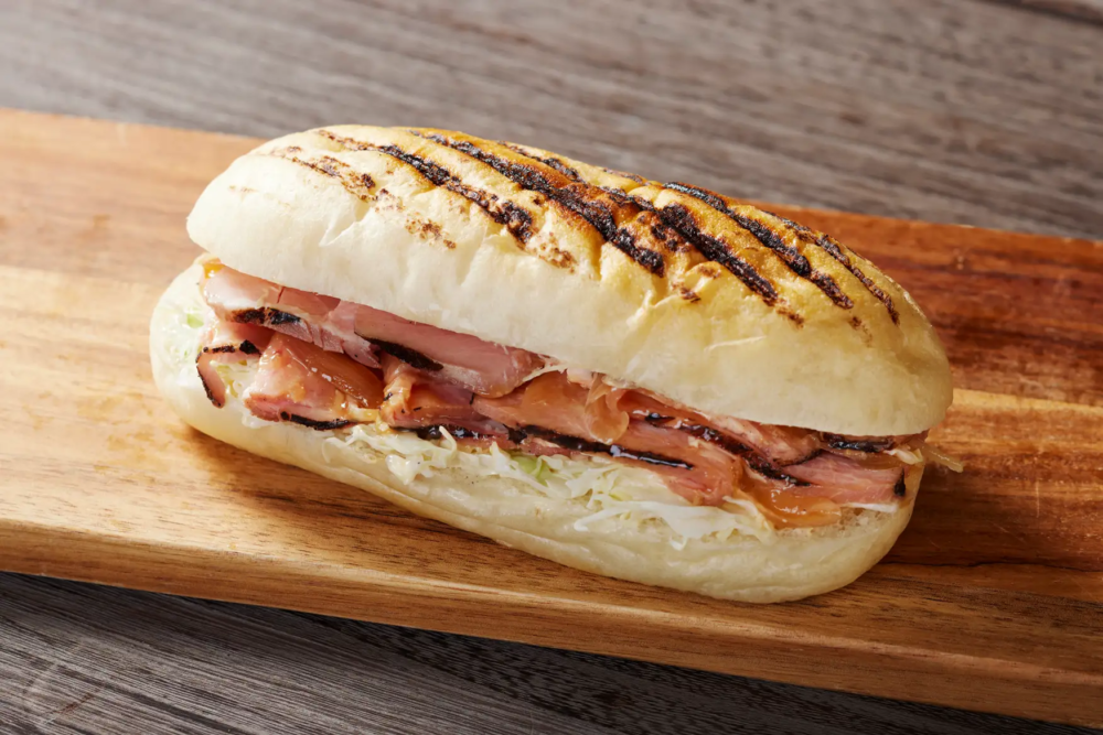 ジューシーな豚肉に生姜の風味を効かせた、身体を温める冬のサンドイッチ。シャキシャキのキャベツが加わり、食べ応えのある一品。
